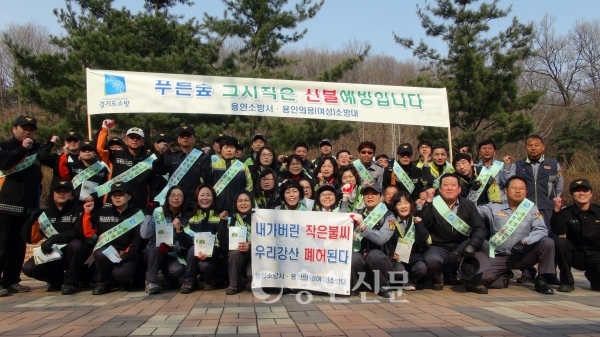 용인소방서(서장 전광택)는 지난달 30일 봄 행락철을 맞아 등산객이 많이 모이는 용인시 석성산(높이 471.5m)일대에서 산불예방의식 확산과 안전산행을 홍보하기 위한 산불예방 캠페인을 실시했다.