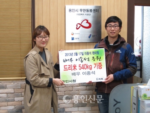 이종석 팬미팅을 진행한 (주)드리미는 지난달 29일 이종석과 팬들의 요청에 따라 어려운 이웃을 위해 쌀화환 형태의 쌀(20kg 27포)을 용인시무한돌봄센터로 전달했다.
