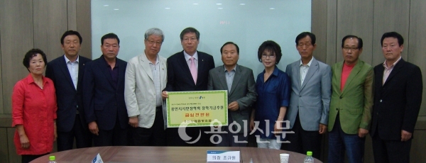 | ▲ 용인농협(조합장 조규원) 이사회가 지난 14일 본점 2층에서 용인시 시민장학회에 장학기금 1000만원을 기탁하는 모습. | ||