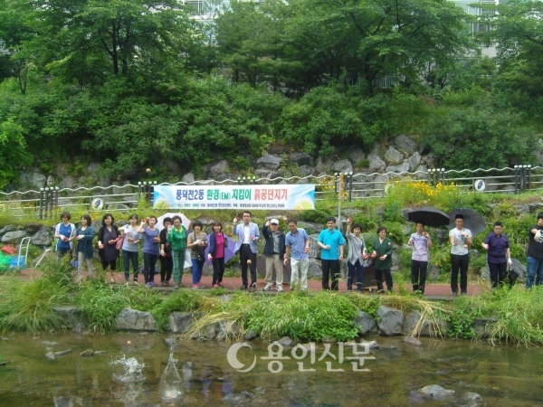 이번 행사는 탄천 수질환경을 개선코자 동장, 주민자치위원장 등 단체장을 비롯해 수강생, 동직원 등 50여명이 참가했으며 지난 5월~6월까지 매주 수요일 8회에 걸친 ‘EM아카데미’ 수업에서 만든 500여개의 EM 흙공을 탄천에 투하했다.