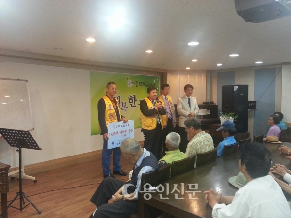 국제라이온스협회 354-B지구 신갈라이온스클럽(회장 이진우)은 지난달 25일 신갈 무료급식소에 에어컨을 전달하는 한편 배식봉사로 사랑을 전했다.
