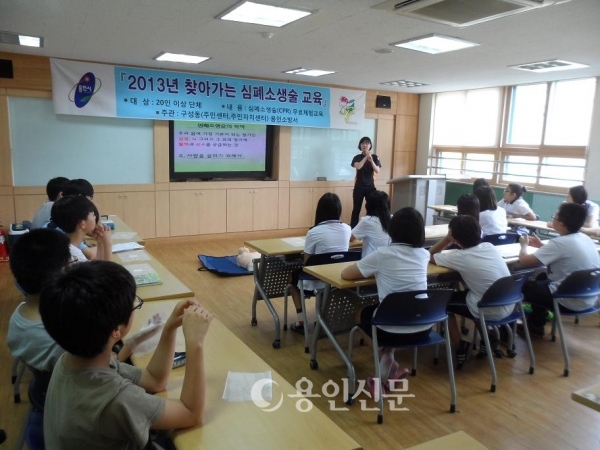 교육은 용인소방서 응급구조사의 지도로 심폐소생술 기본 이론교육, AED(자동제세동기) 영상교육, 성인·소아 심폐소생술 실습 등으로 이뤄졌으며 학생들의 호응도가 높아 시종일관 열띤 분위기 속에서 펼쳐졌다.