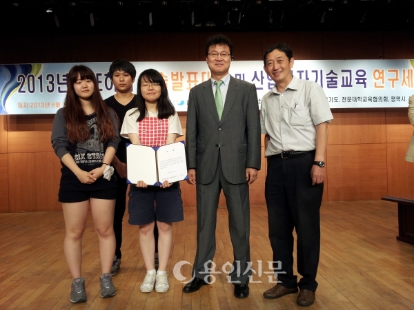 용인송담대학교(총장 최성식) 디지털전자과는 지난달 28일 국제대학교에서 개최된 대한전자공학회 산업전자소사이어티가 주관하고 교육부, 경기도지사, 평택시장 및 한국전문대학교육협의회에서 후원한 “제3회 전국 전문대학교 IT융합 전자회로 설계 및 제작 경진대회”에서 은상인 "평택시장상"을 수상했다.