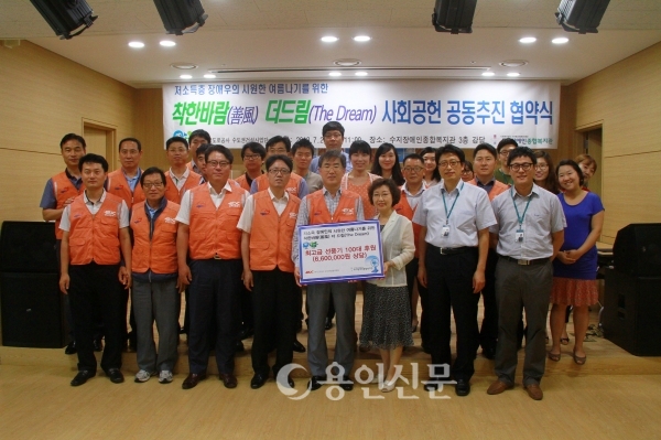 수지구 내 저소득 장애인 가정을 지속적으로 지원키 위해 수지장애인종합복지관과 상생의 역할을 감당한다는 업무협약식도 진행됐다.