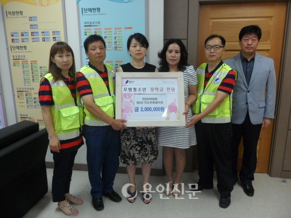 이번 장학금은 청소년지도위원협의회의 신봉도시개발지구 내 유휴농지를 활용한 주말농장 분양 기금 100만원과 주민자치위원회의 주민자치센터 운영 수익금 100만 원으로 조성, 어려운 환경에 있는 모범청소년에게 전달됐다.