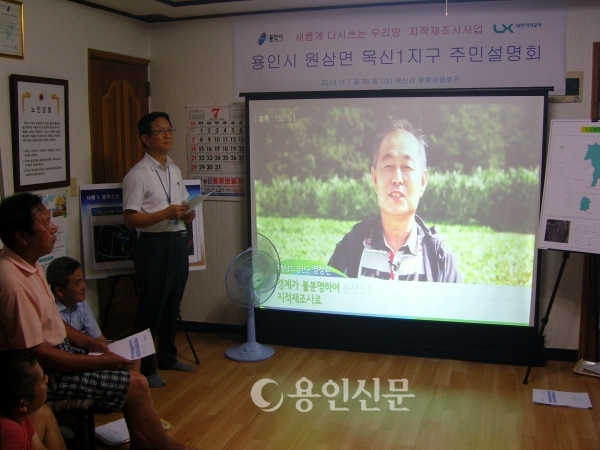 처인구는 첫 시발점으로 원삼면 목신1지구(목신리 424-1번지 일원 101필지 면적 7만 8684㎡)에 대해 주민동의를 구하기 위해 30일 목신1리 후동마을회관에서 주민 30여명이 참석한 가운데 설명회를 가졌다.