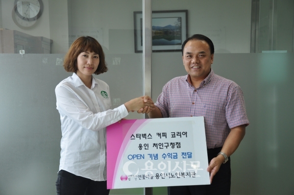 이번 후원금은 스타벅스 처인구청점 오픈기념행사로 마련된 것으로 노인복지서비스를 위해 써줄 것을 당부했다.