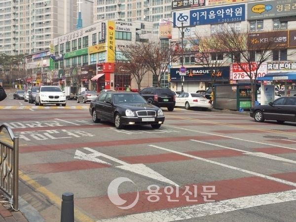 | ▲ 불법주정차로 골머리를 앓고있는 성복동 주민센터 사거리 앞 | ||